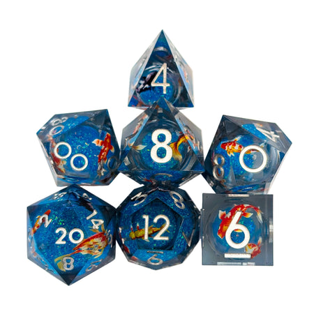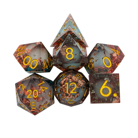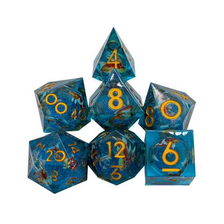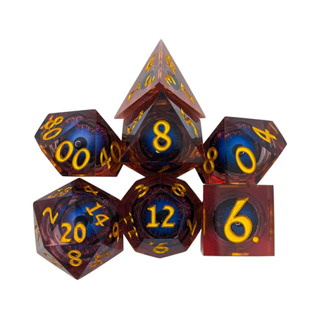 Hydra Eye Blue and Orange Liquid Core Dice Set