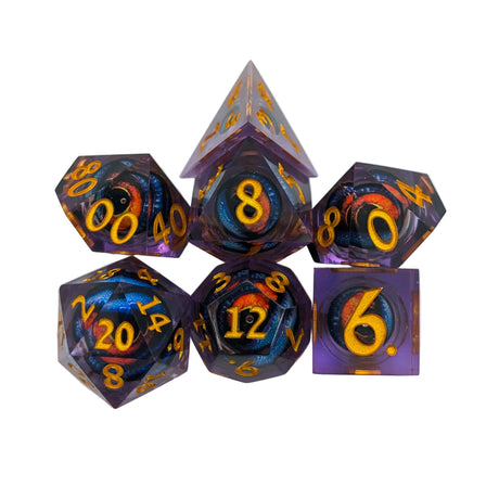 Dragon Eye Purple and Orange Liquid Core Dice Set